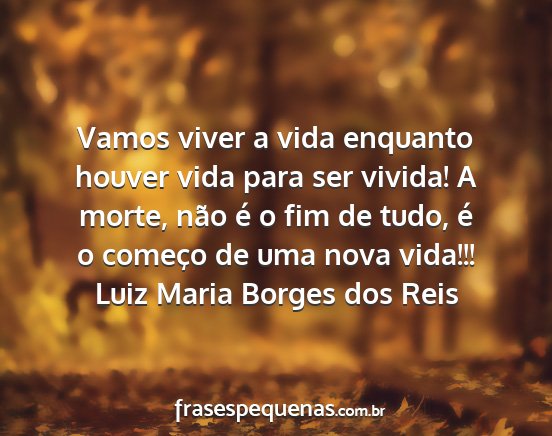 Vamos viver a vida enquanto houver vida para ser vivida! A morte, não é o fim de tudo, é o começo de uma nova vida!!!Luiz Maria Borges dos Reis