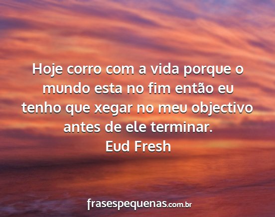 Hoje corro com a vida porque o mundo esta no fim então eu tenho que xegar no meu objectivo antes de ele terminar.Eud Fresh