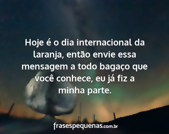Hoje é o dia internacional da laranja, então envie essa mensagem a todo bagaço que você conhece, eu já fiz a minha parte.