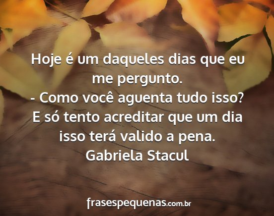 E só tento acreditar que um dia isso terá valido a pena.Gabriela Stacul