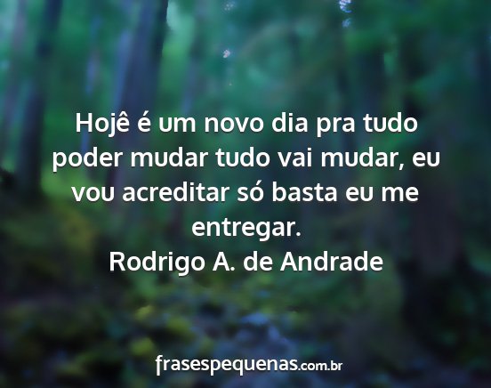 Hojê é um novo dia pra tudo poder mudar tudo vai mudar, eu vou acreditar só basta eu me entregar.Rodrigo A. de Andrade