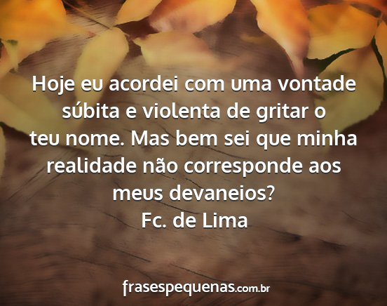 Hoje eu acordei com uma vontade súbita e violenta de gritar o teu nome. Mas bem sei que minha realidade não corresponde aos meus devaneios?Fc. de Lima