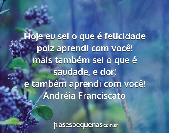 Hoje eu sei o que é felicidade poiz aprendi com você!