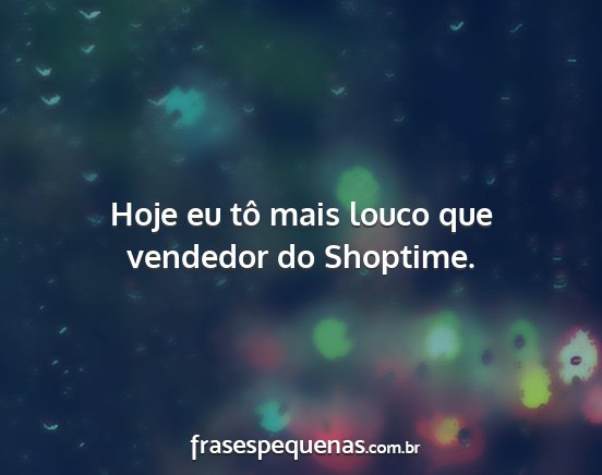 Hoje eu tô mais louco que vendedor do Shoptime.