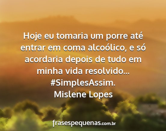 Hoje eu tomaria um porre até entrar em coma alcoólico, e só acordaria depois de tudo em minha vida resolvido...