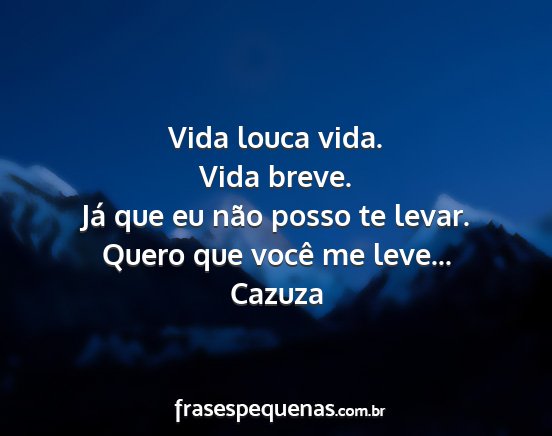 Vida louca vida. Vida breve. Já que eu...