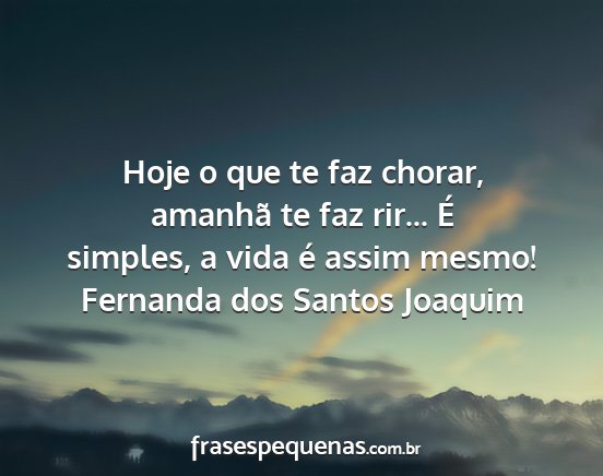 Hoje o que te faz chorar, amanhã te faz rir... É simples, a vida é assim mesmo!Fernanda dos Santos Joaquim