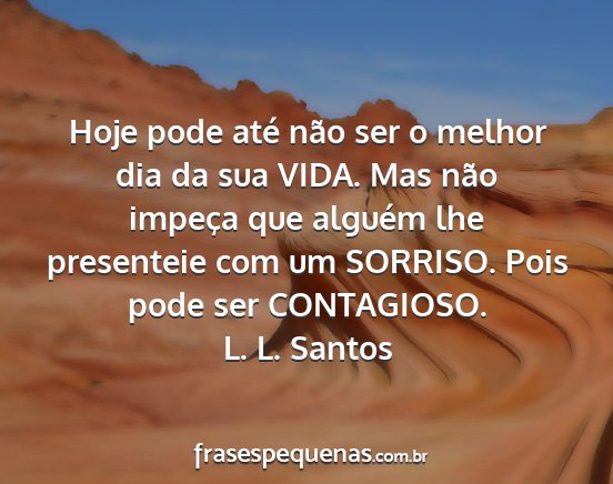 Hoje pode até não ser o melhor dia da sua VIDA. Mas não impeça que alguém lhe presenteie com um SORRISO. Pois pode ser CONTAGIOSO.L. L. Santos