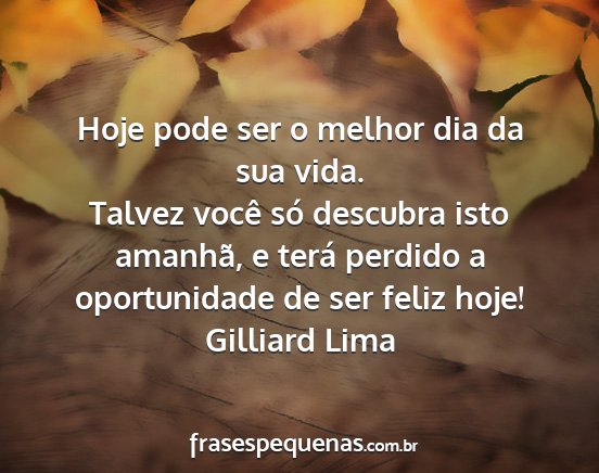 Talvez você só descubra isto amanhã, e terá perdido a oportunidade de ser feliz hoje!Gilliard Lima