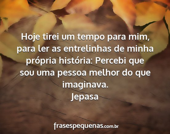 Hoje tirei um tempo para mim, para ler as entrelinhas de minha própria história: Percebi que sou uma pessoa melhor do que imaginava.Jepasa