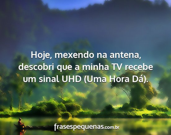 Hoje, mexendo na antena, descobri que a minha TV recebe um sinal UHD (Uma Hora Dá).