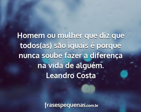 Homem ou mulher que diz que todos(as) são iguais é porque nunca soube fazer a diferença na vida de alguém.Leandro Costa