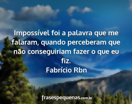 Impossível foi a palavra que me falaram, quando perceberam que não conseguiriam fazer o que eu fiz.Fabrício Rbn