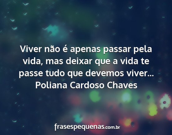 Viver não é apenas passar pela vida, mas deixar que a vida te passe tudo que devemos viver...Poliana Cardoso Chaves
