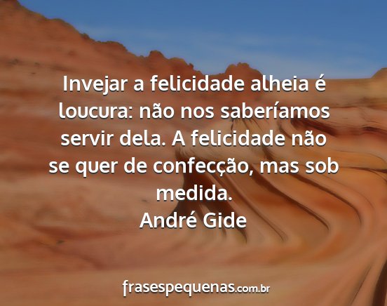 Invejar a felicidade alheia é loucura: não nos saberíamos servir dela. A felicidade não se quer de confecção, mas sob medida.André Gide