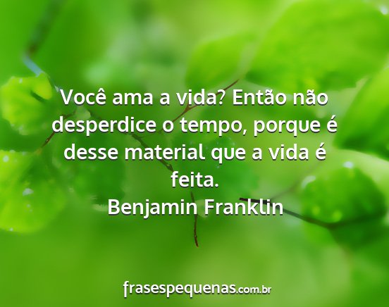Você ama a vida? Então não desperdice o tempo, porque é desse material que a vida é feita.Benjamin Franklin