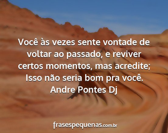 Você às vezes sente vontade de voltar ao passado, e reviver certos momentos, mas acredite; Isso não seria bom pra você.Andre Pontes Dj