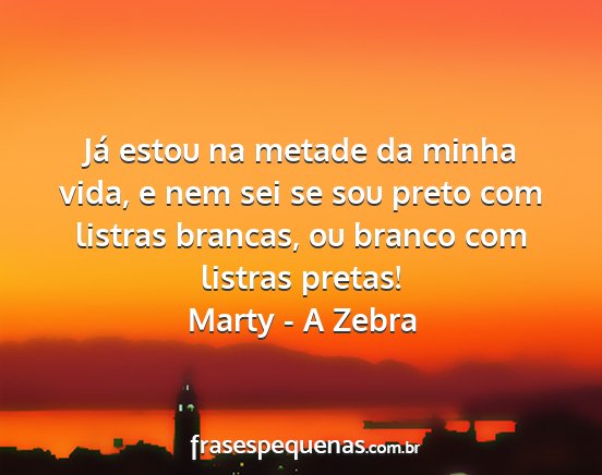 Já estou na metade da minha vida, e nem sei se sou preto com listras brancas, ou branco com listras pretas!Marty - A Zebra