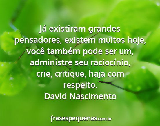 Já existiram grandes pensadores, existem muitos hoje, você também pode ser um, administre seu raciocínio, crie, critique, haja com respeito.David Nascimento