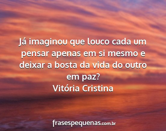 Já imaginou que louco cada um pensar apenas em si mesmo e deixar a bosta da vida do outro em paz?Vitória Cristina