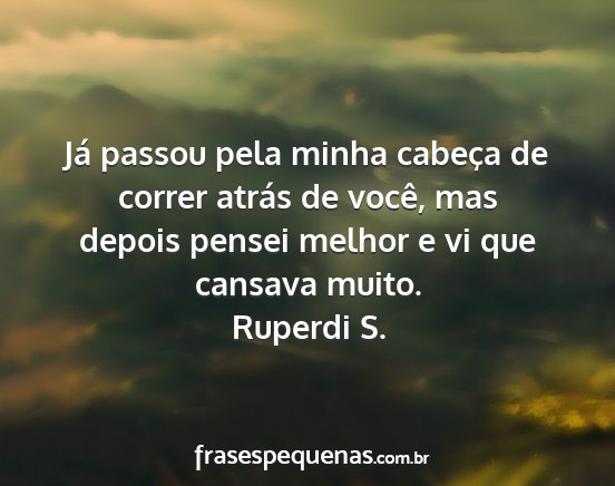 Já passou pela minha cabeça de correr atrás de você, mas depois pensei melhor e vi que cansava muito.Ruperdi S.
