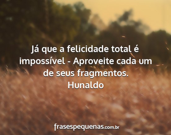 Já que a felicidade total é impossível - Aproveite cada um de seus fragmentos.
