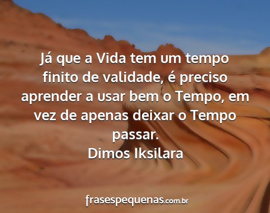 Já que a Vida tem um tempo finito de validade, é preciso aprender a usar bem o Tempo, em vez de apenas deixar o Tempo passar.Dimos Iksilara