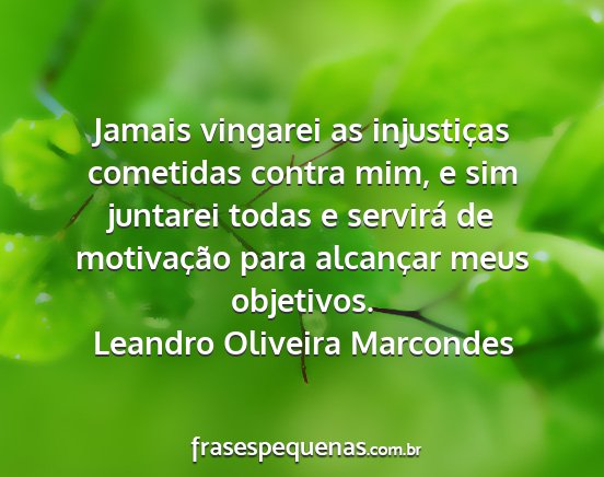 Jamais vingarei as injustiças cometidas contra mim, e sim juntarei todas e servirá de motivação para alcançar meus objetivos.Leandro Oliveira Marcondes