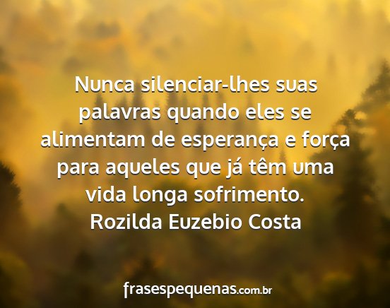 Nunca silenciar-lhes suas palavras quando eles se alimentam de esperança e força para aqueles que já têm uma vida longa sofrimento.Rozilda Euzebio Costa