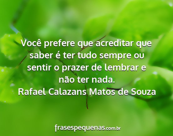 Você prefere que acreditar que saber é ter tudo sempre ou sentir o prazer de lembrar e não ter nada.Rafael Calazans Matos de Souza