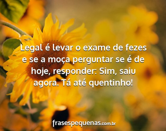 Legal é levar o exame de fezes e se a moça perguntar se é de hoje, responder: Sim, saiu agora. Tá até quentinho!