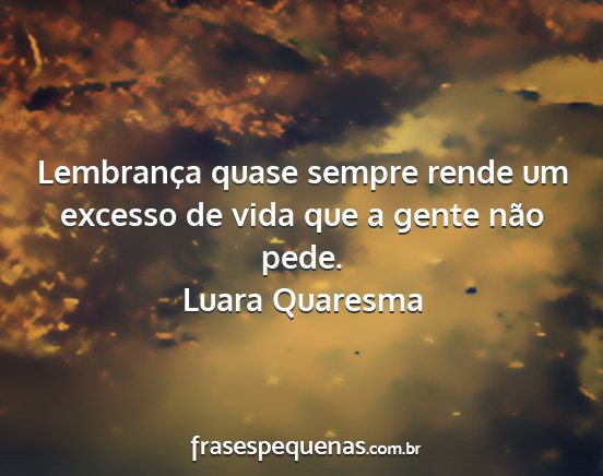 Lembrança quase sempre rende um excesso de vida que a gente não pede.