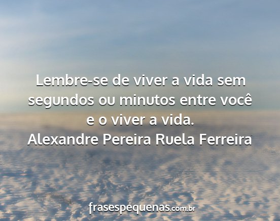 Lembre-se de viver a vida sem segundos ou minutos entre você e o viver a vida.Alexandre Pereira Ruela Ferreira