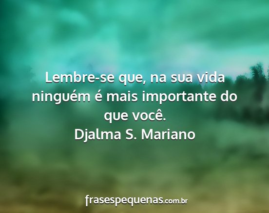 Lembre-se que, na sua vida ninguém é mais importante do que você.