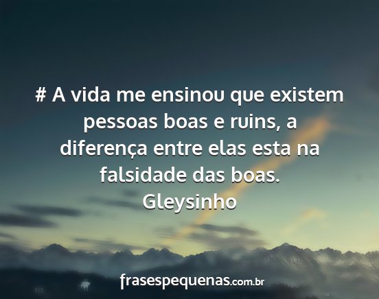 # A vida me ensinou que existem pessoas boas e ruins, a diferença entre elas esta na falsidade das boas.Gleysinho