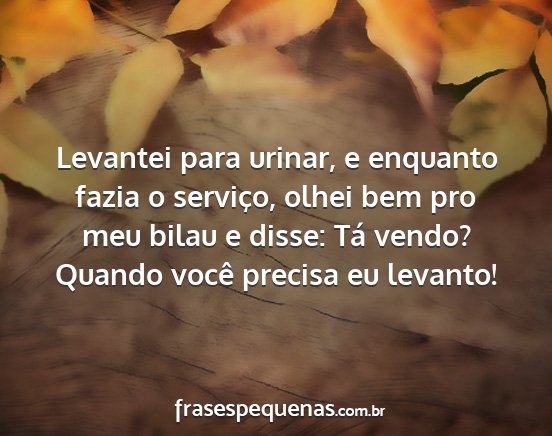 Levantei para urinar, e enquanto fazia o serviço, olhei bem pro meu bilau e disse: Tá vendo? Quando você precisa eu levanto!
