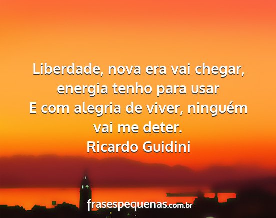 E com alegria de viver, ninguém vai me deter.Ricardo Guidini