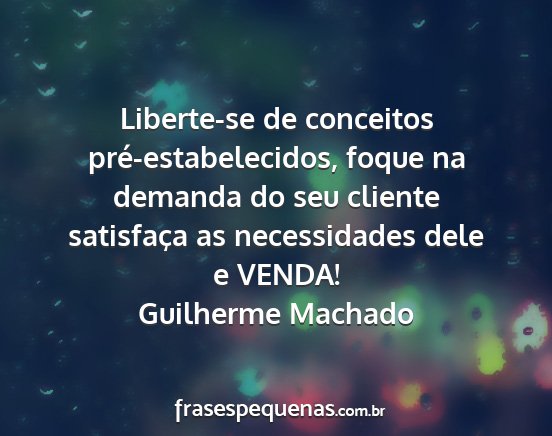 Liberte-se de conceitos pré-estabelecidos, foque na demanda do seu cliente satisfaça as necessidades dele e VENDA!Guilherme Machado