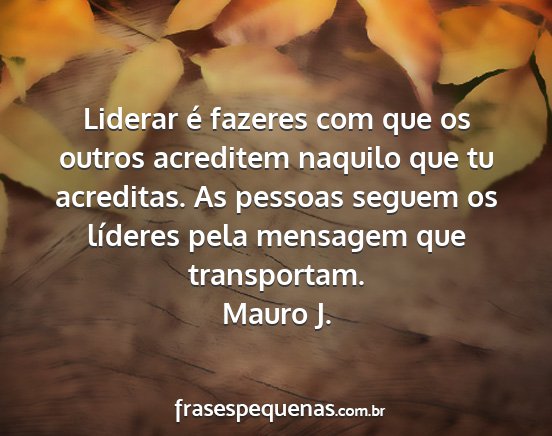 Liderar é fazeres com que os outros acreditem naquilo que tu acreditas. As pessoas seguem os líderes pela mensagem que transportam.Mauro J.