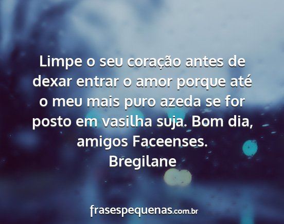 Limpe o seu coração antes de dexar entrar o amor porque até o meu mais puro azeda se for posto em vasilha suja. Bom dia, amigos Faceenses.Bregilane