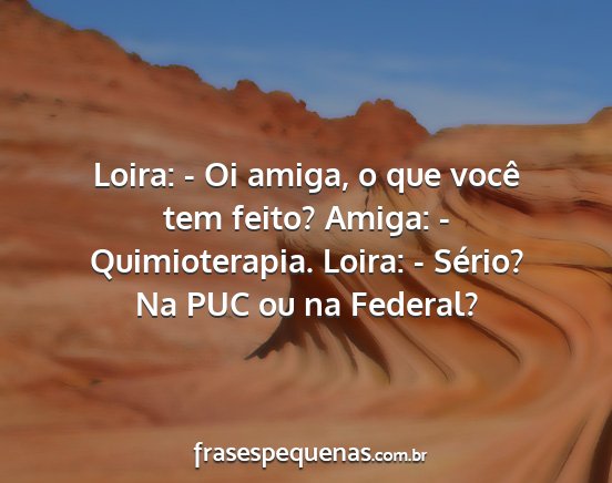 Loira: - Oi amiga, o que você tem feito? Amiga: - Quimioterapia. Loira: - Sério? Na PUC ou na Federal?