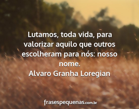 Lutamos, toda vida, para valorizar aquilo que outros escolheram para nós: nosso nome.Alvaro Granha Loregian