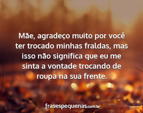 Mãe, agradeço muito por você ter trocado minhas fraldas, mas isso não significa que eu me sinta a vontade trocando de roupa na sua frente.