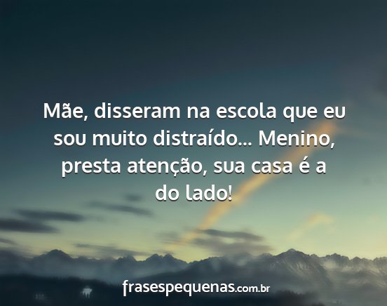 Mãe, disseram na escola que eu sou muito distraído... Menino, presta atenção, sua casa é a do lado!