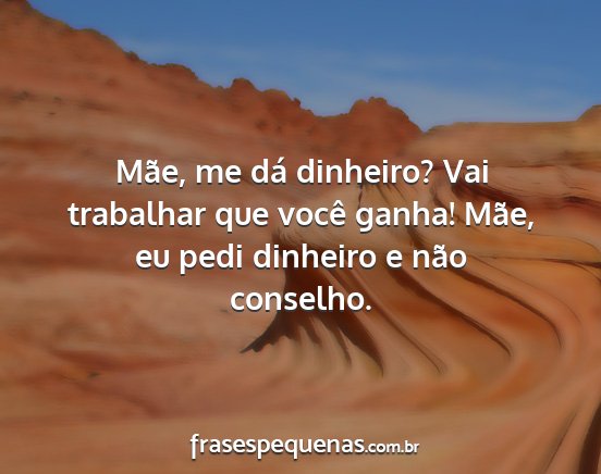 Mãe, me dá dinheiro? Vai trabalhar que você ganha! Mãe, eu pedi dinheiro e não conselho.