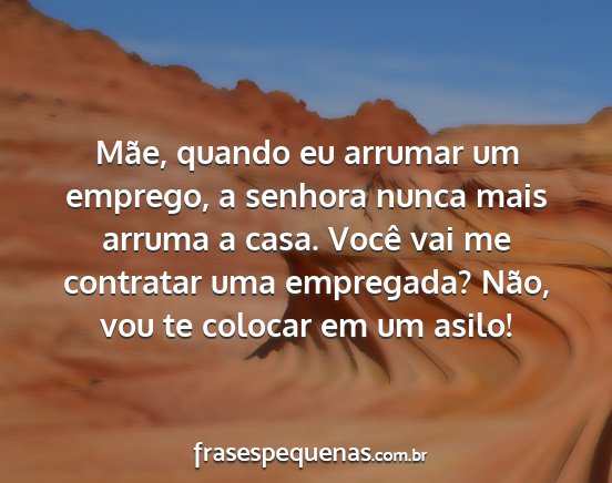 Mãe, quando eu arrumar um emprego, a senhora nunca mais arruma a casa. Você vai me contratar uma empregada? Não, vou te colocar em um asilo!