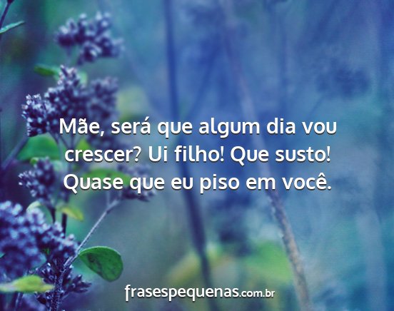 Mãe, será que algum dia vou crescer? Ui filho! Que susto! Quase que eu piso em você.