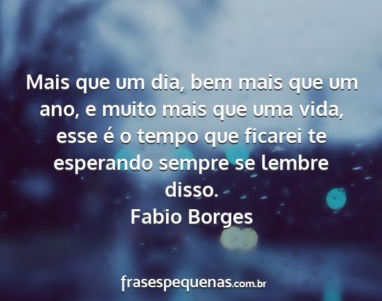 Mais que um dia, bem mais que um ano, e muito mais que uma vida, esse é o tempo que ficarei te esperando sempre se lembre disso.Fabio Borges