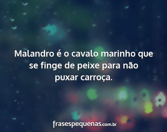Malandro é o cavalo marinho que se finge de peixe para não puxar carroça.