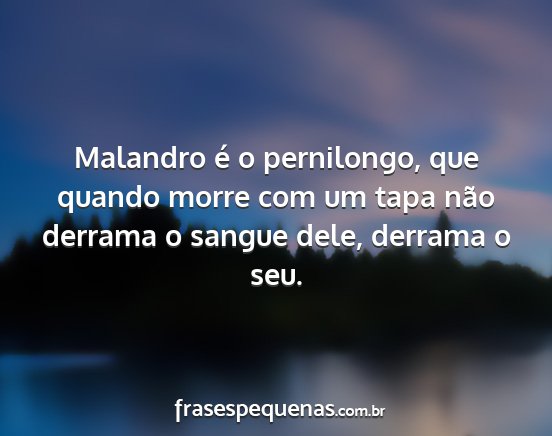 Malandro é o pernilongo, que quando morre com um tapa não derrama o sangue dele, derrama o seu.
